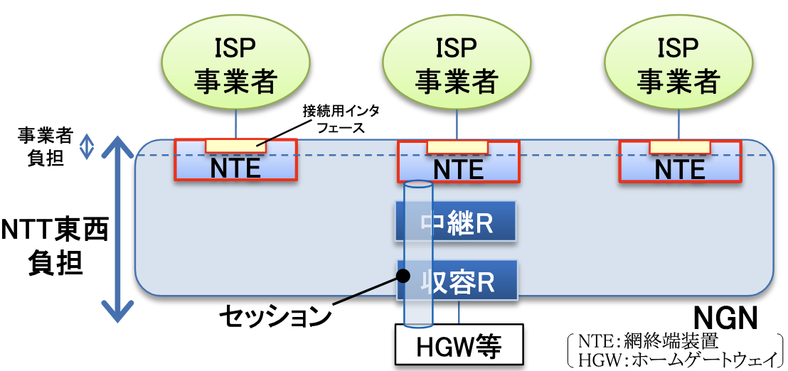 후렛츠망과 일본 특색 PPPoE현 세대 NTT의 백본망은 NGN(Next Generation Network)이라고 합니다. Full IPv6 기반의 네트워크이고, 이것을 이용해 플레츠(FLET'S, フレッツ 후렛츠)라는 광인터넷 서비스를 제공하기 때문에 흔히 후렛츠망이라고도 부릅니다.하지만 NGN은 그 자체로는 인터넷에 연결되어 있지 않은 폐쇄망입니다. NTT법에 따라 NTT동/서는 인터넷 연결서비스를 직접 제공하면 안 되고, 후렛츠망과 다크 파이버(사용되지 않고 있는 예비 광케이블 용량)를 타 통신사에 개방할 것이 의무화되어 있기 때문입니다. 계열사인 도코모나 NTT커뮤니케이션즈가 인터넷 연결서비스를 제공하고, NTT데이터는 세계구급 규모의 IX를 운영하고 있는 걸 보면 솔직히 눈 가리고 아웅이 아닌가..