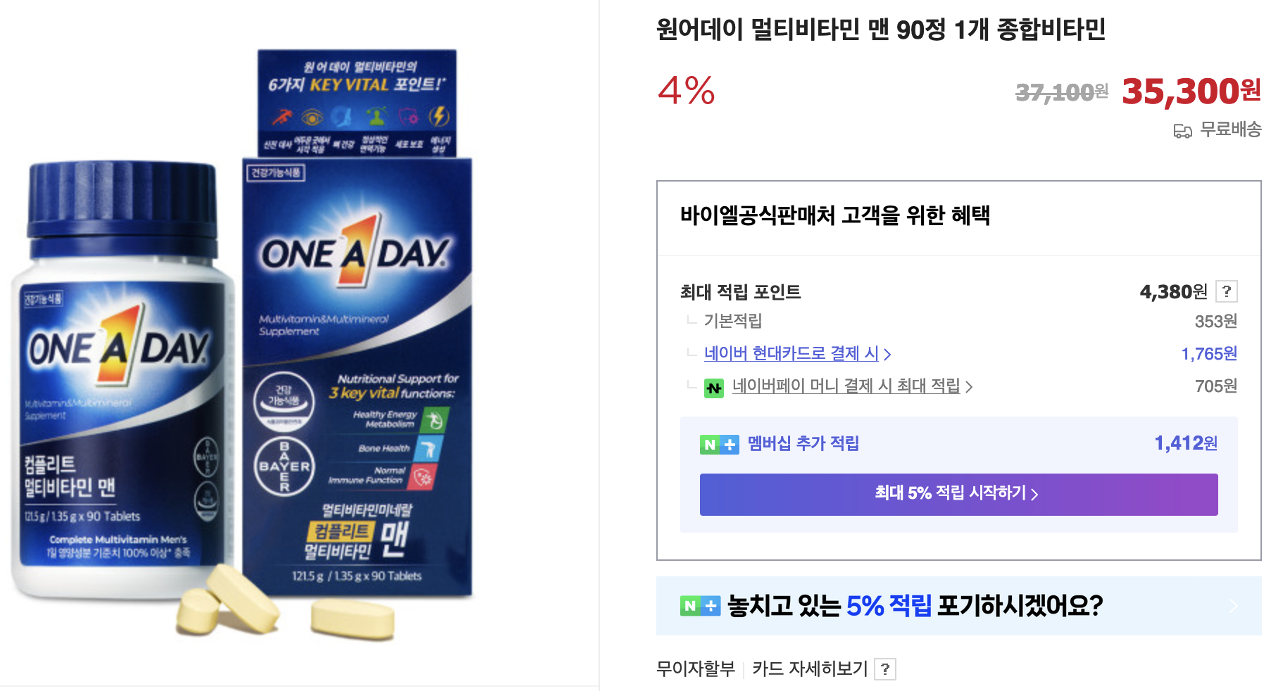 보시는 바와 같이 대충 100% 근처에 맞춰 성분이 설계되어 있기 때문에, 특정 성분의 과량투여(오버도스)를 원하는 극단적인 케이스에는 맞지 않을 수 있습니다. 이 경우에는 쏜리서치 제품처럼 고함량 비타민을 선택하는 게 좋겠습니다.