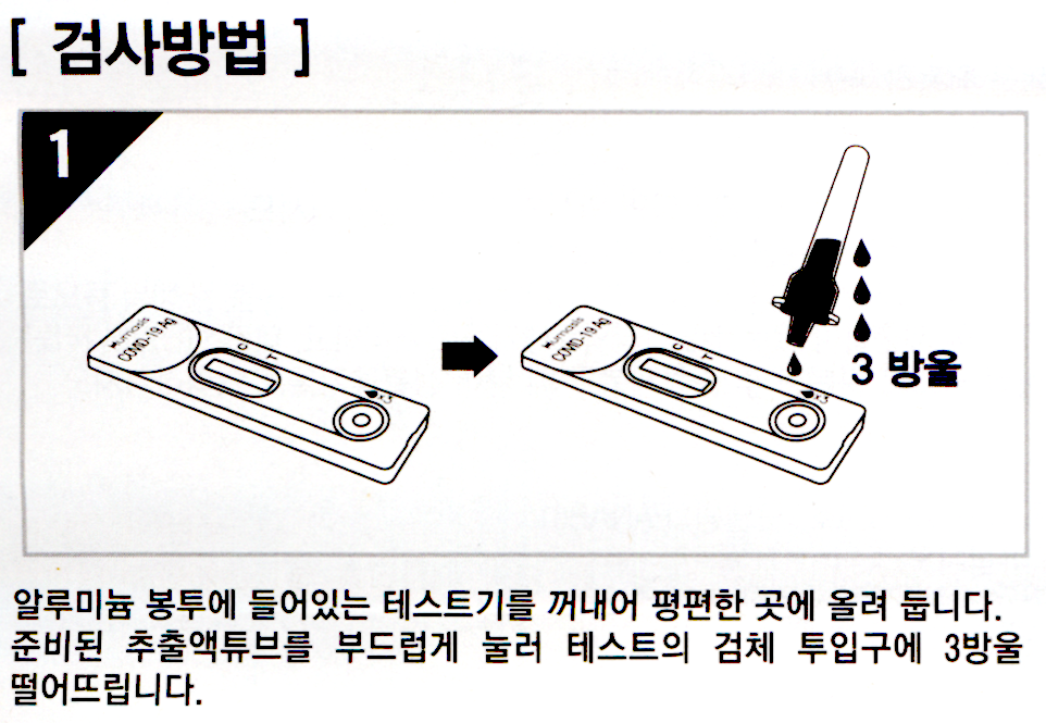 - 검체추출액(플라스틱 통에 들어있는 액체)에는 계면활성제(고도로 발전한 비누)가 들어있습니다. 이것은 바이러스(항원)의 겉면을 터뜨려 바이러스 내부의 내용물(?)을 꺼내는 데 쓰입니다.