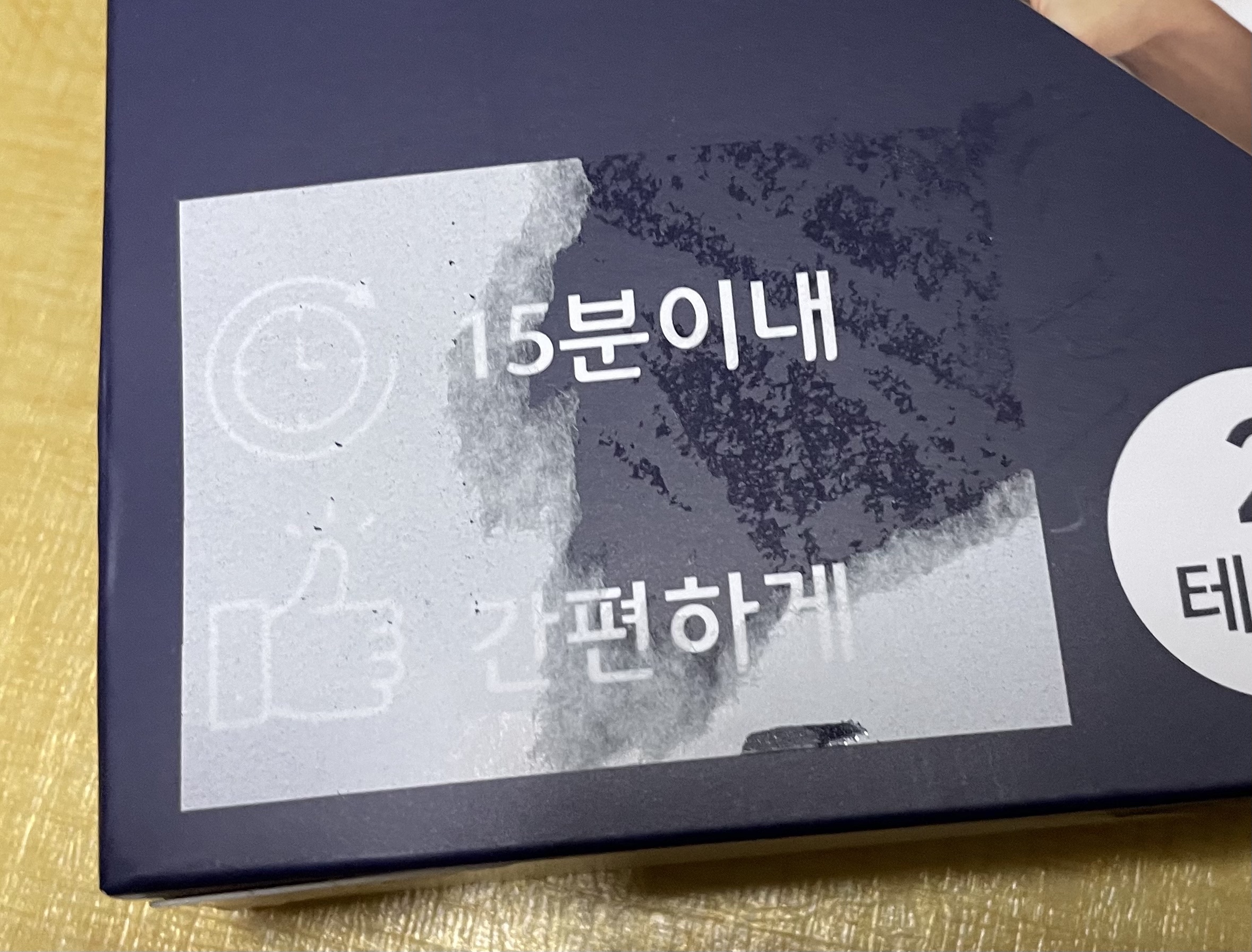박스는 대충 이렇게 생겼습니다. 왼쪽 밑에는 원래 "15분이내", "간편하게"라는 문구가 적혀 있는데, 스티커를 붙여서 가려뒀습니다. 왠지는 모르겠네요.