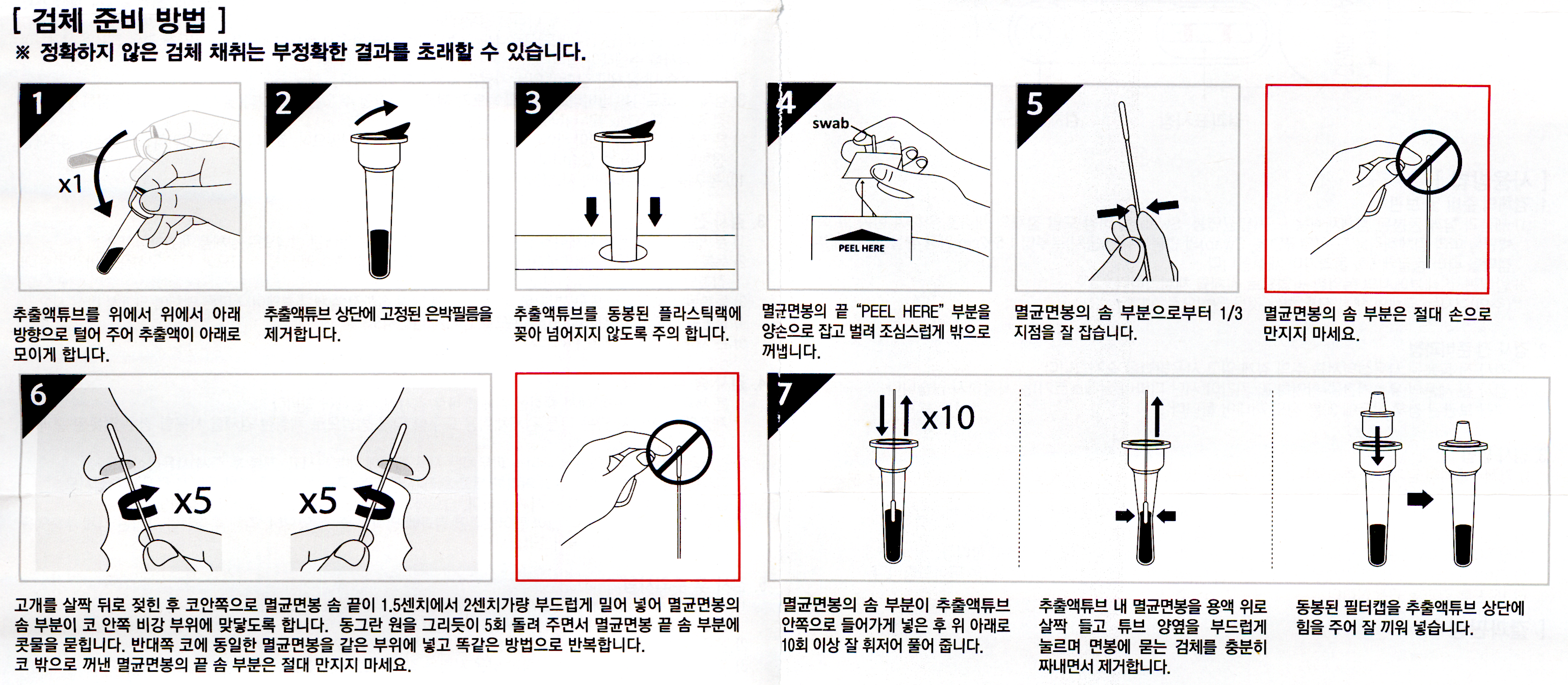 3번에서 말하는 "동봉된 플라스틱랙"이라는 것은 검사 키트 내용물을 담고 있는 플라스틱 통을 말하는 겁니다. 거기에 있는 구멍에 튜브를 끼워넣으면 됩니다.