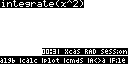 [F2](algb, algebra입니다) - [3] 을 눌러 "integrate("를 입력하고, [X,θ,T] 버튼과 x² 버튼, 괄호 버튼을 눌러 식을 완성한 뒤 [EXE] 버튼을 눌러 계산합니다.