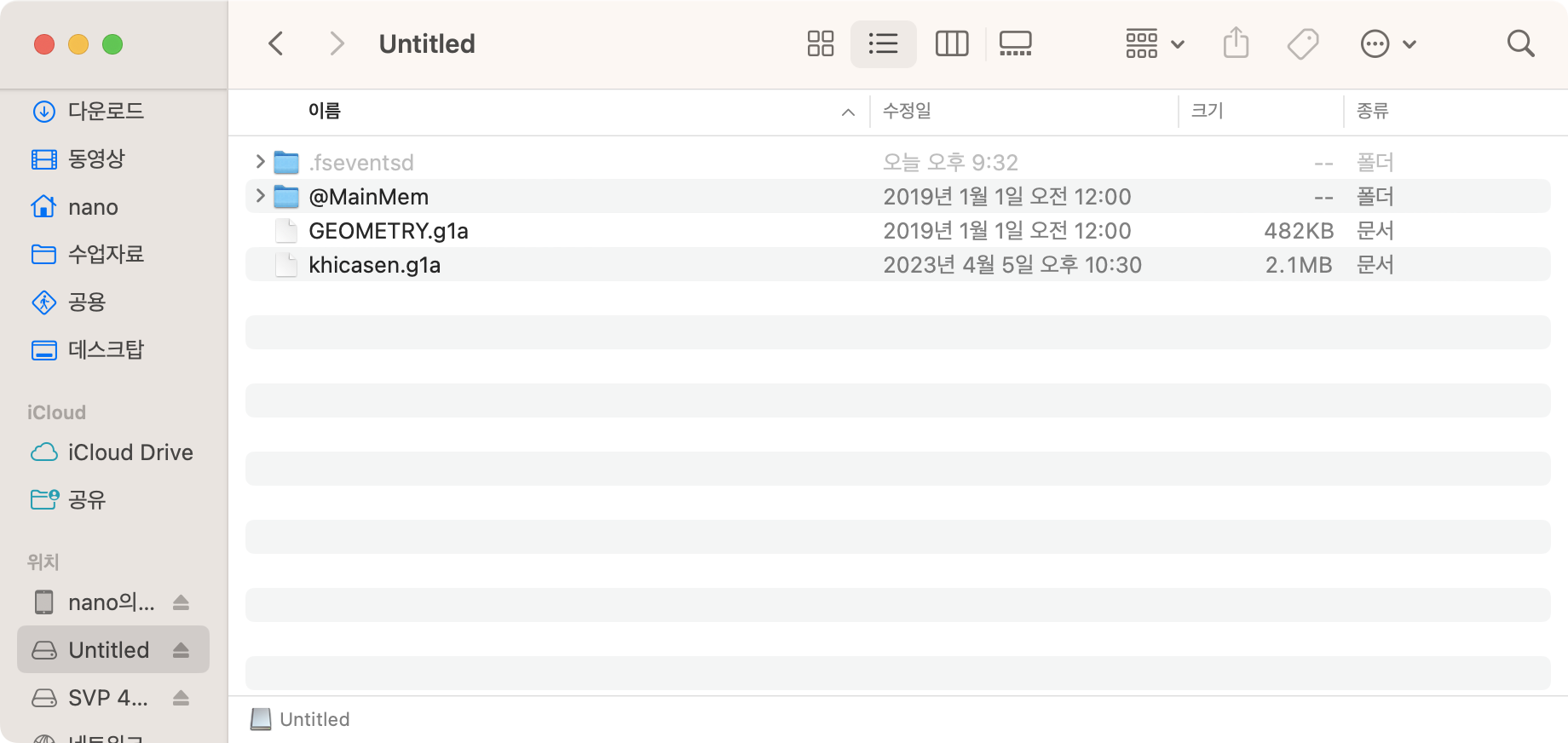 내 컴퓨터(Mac의 경우 Finder)를 보시면 이동식 드라이브 "Untitled"가 생겨 있을 겁니다. 해당 드라이브의 최상위 경로에 위에서 다운로드받은 khicasen.g1a를 넣어줍니다.