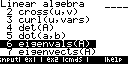 그 다음 [F4] (cmds) - [3] (Linear algebra) - [6] (eigenvals(A)) 를 눌러 "eigenvals("를 입력합니다.