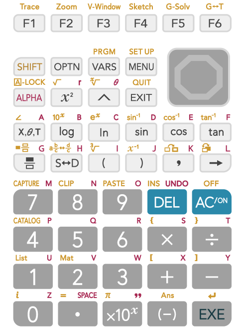 F1~F3까지의 버튼을 누르면 각 카테고리(Algb, Calc, Plot)에 해당되는 주요 함수 바로가기 메뉴가 출력됩니다.
