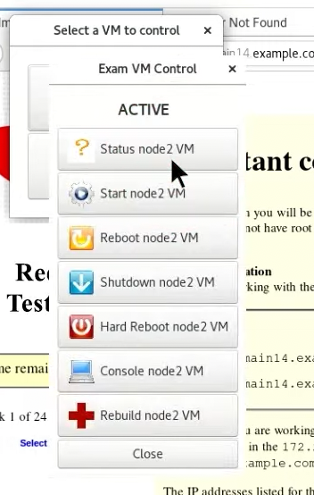 시험 환경에는 파이어폭스 말고도 실제 시험 채점에 사용되는 서버 VM 2개를 관리할 수 있는 프로그램(VM Control)가 제공됩니다. 서버 VM에도 역시 RHEL 9.0 (Plow)가 깔려 있습니다.