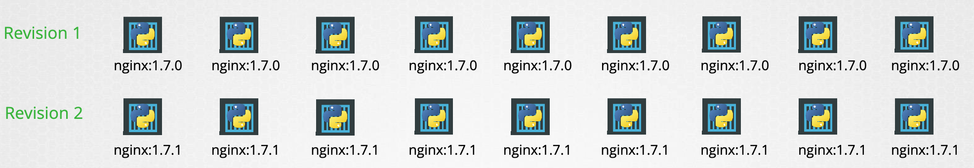 - 나중에, 앱이 업그레이드되면 (즉, 컨테이너의 버전이 새로운 버전으로 올라가면)